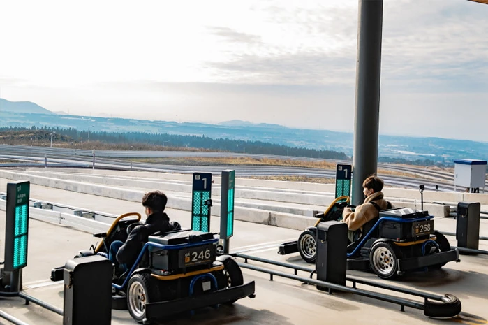 9.81파크는 제주도 애월에 위치한 중력을 이용하여 속도를 내는 친환경 레이싱 테마파크로, 제주 바다를 바라보며 중력가속도(9.81㎨)만으로 스피드를 즐기는 다운힐 레이싱, 한라산 방향을 바라보며 자동회차로 여유롭게 즐기는 업힐 레이싱을 즐길 수 있다. 자료출처 : 대한민국 구석구석(http://korean.visitkorea.or.kr) 펜션에서 차량으로 약 8분, 7.3km